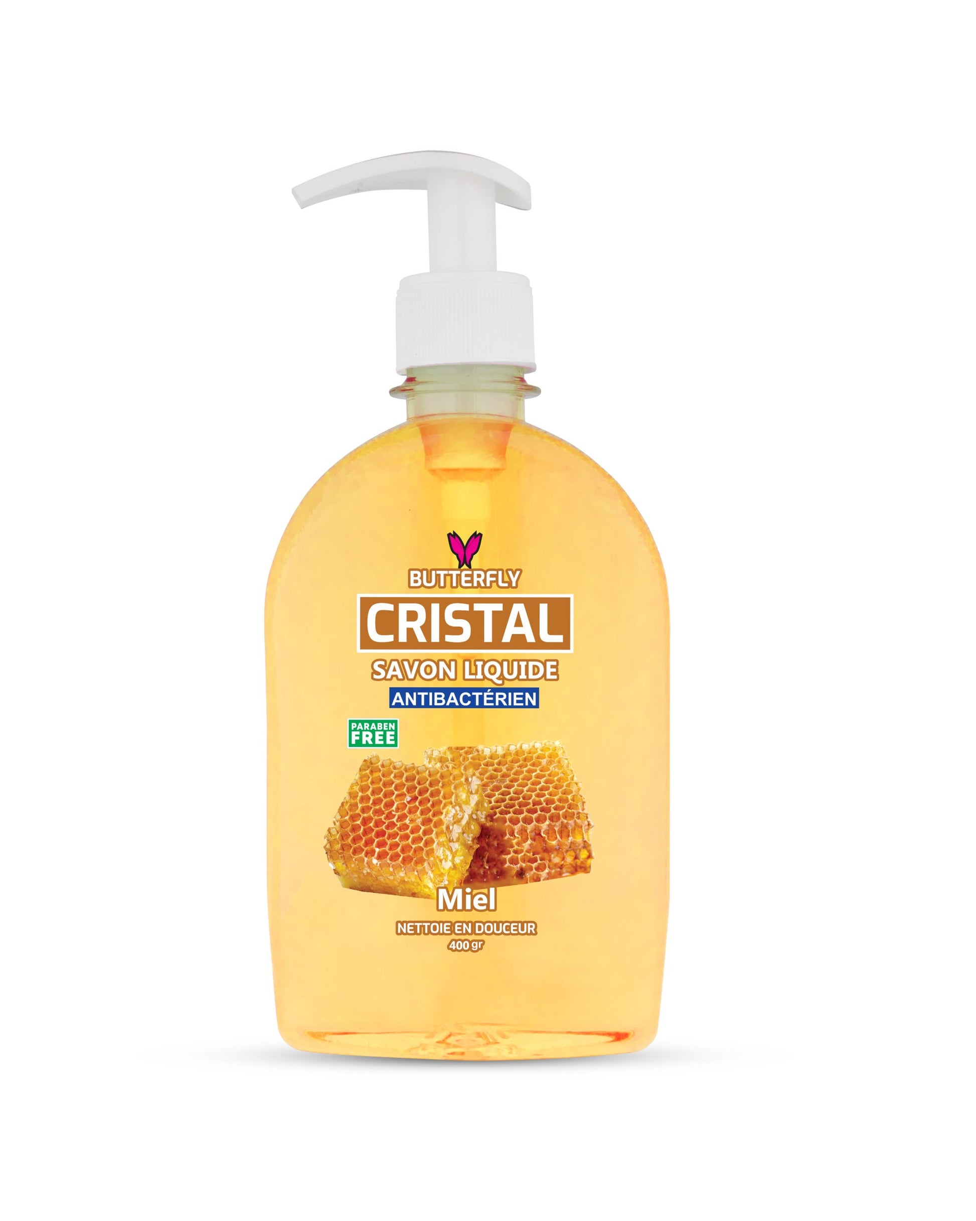Offrez à vos mains une sensation de douceur et de propreté avec le savon liquide CRISTAL au parfum Miel.